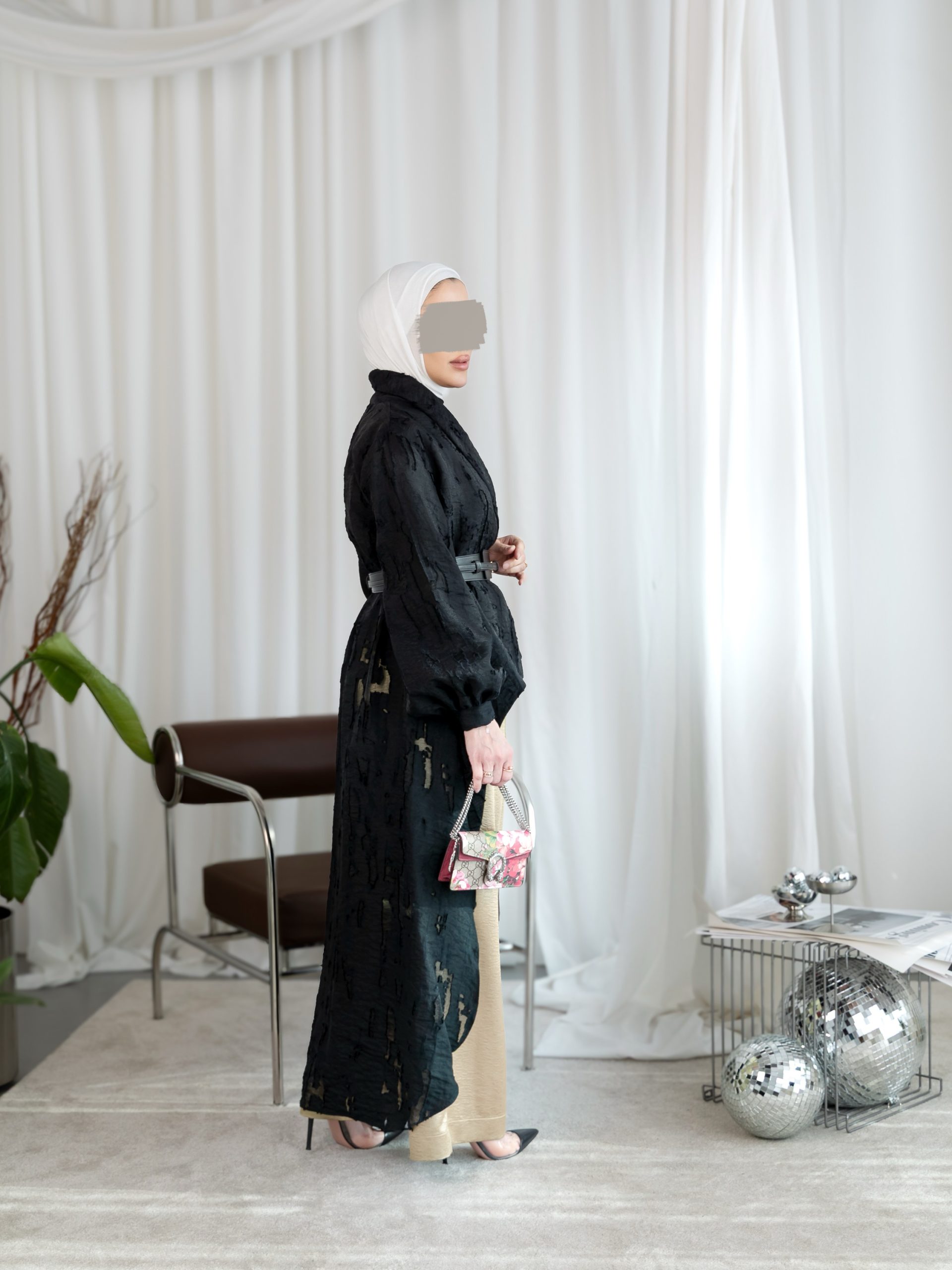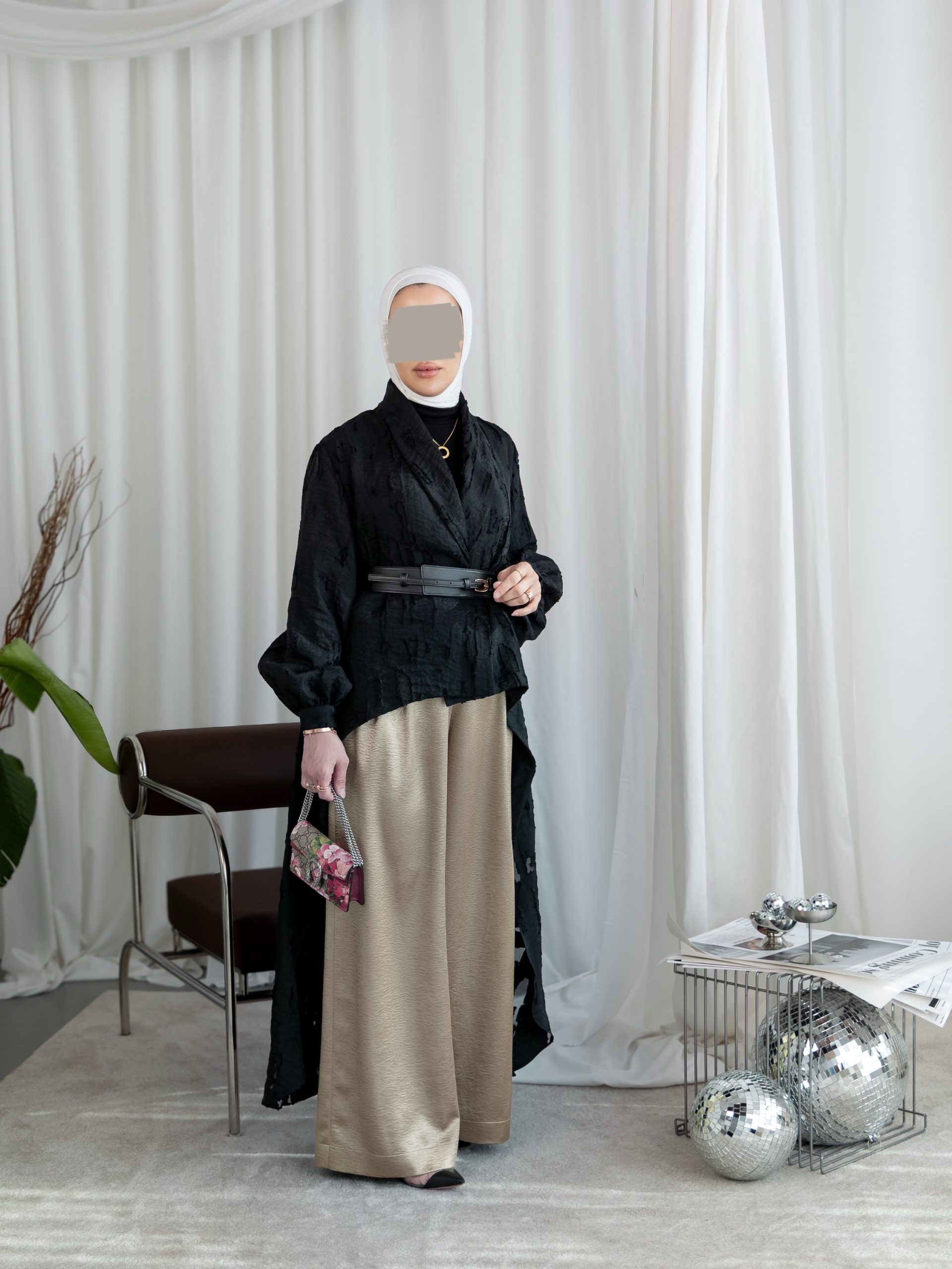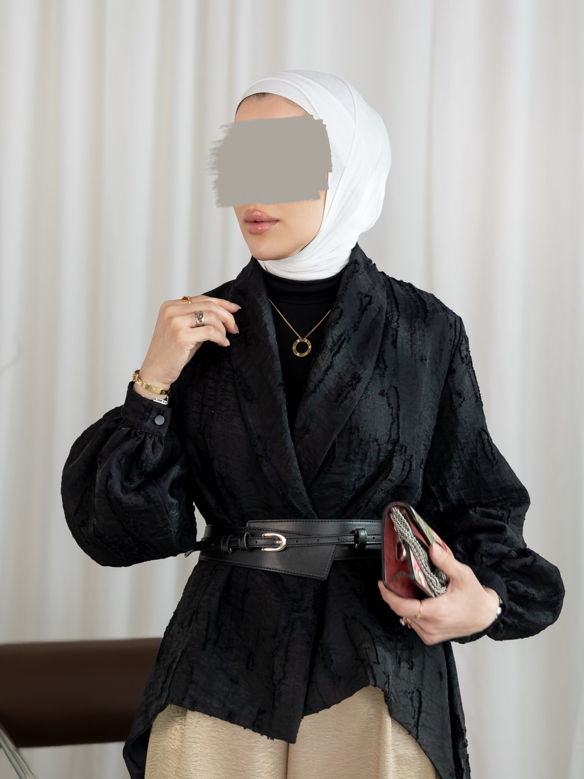 بدلة كاملة من ثلاث قطع توب وبنطلون مع حزام